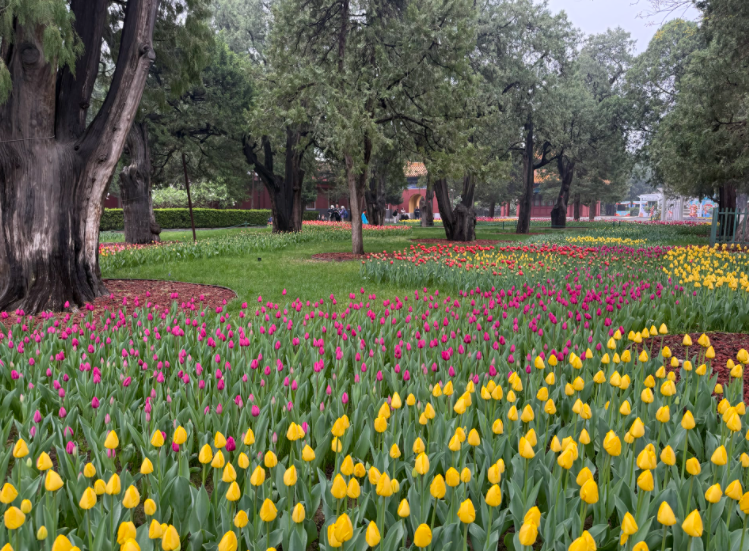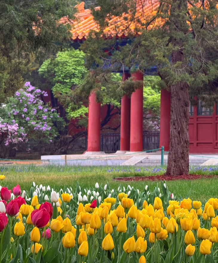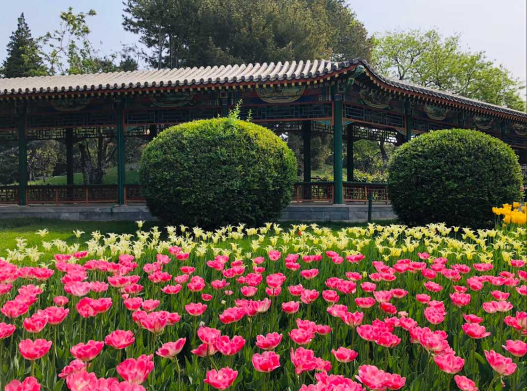 而在这个时候,公园里的郁金香成为了最亮眼的打卡点,这里独有的“古建+花海”景致,最让我着迷。
